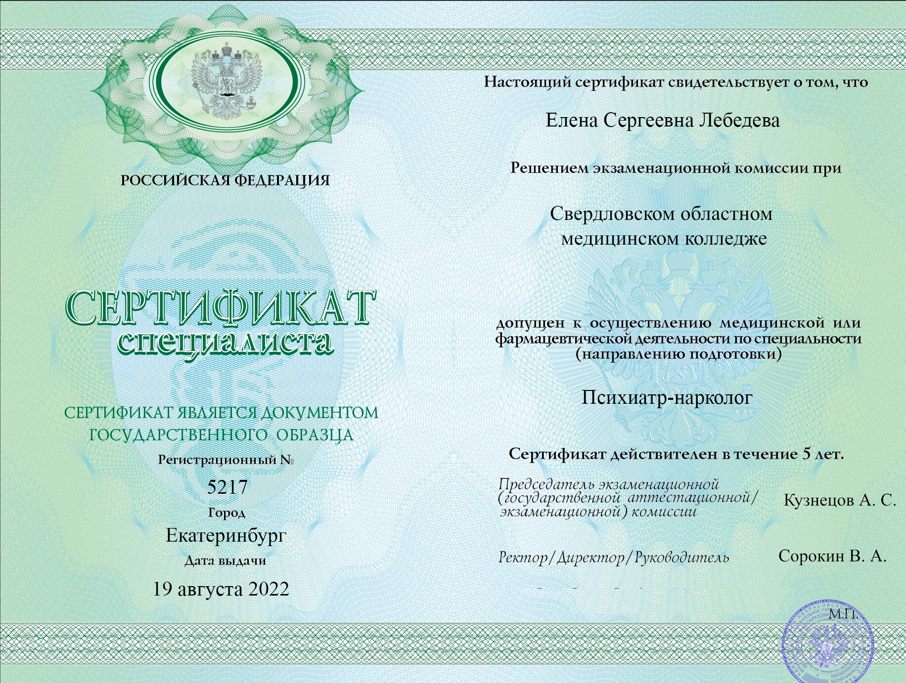 Елена Сергеевна Лебедева врач нарколог клиники доктора Стукаловой в Твери
